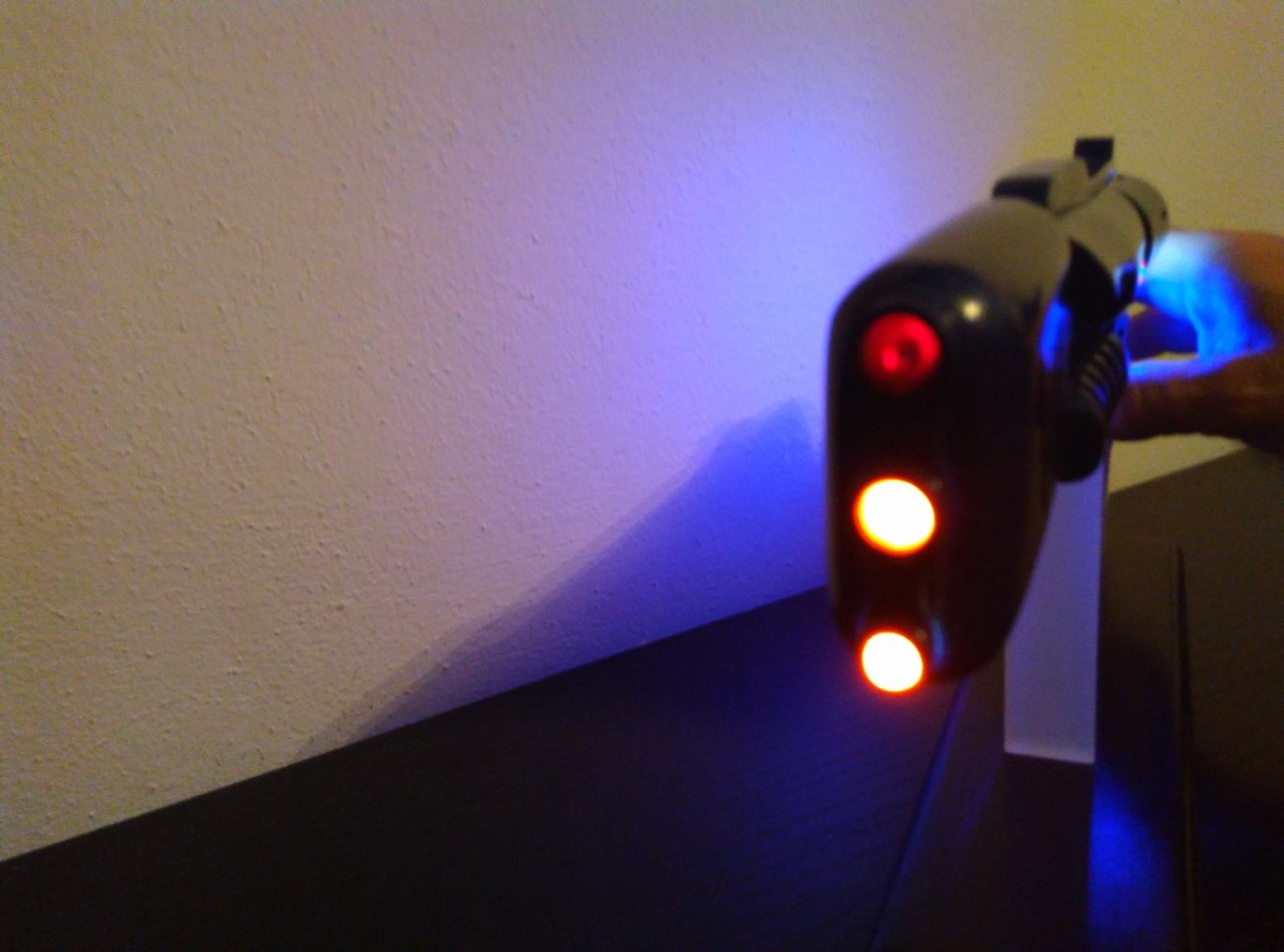 when I press the grillet, two other red and one red laser light up in front of the model