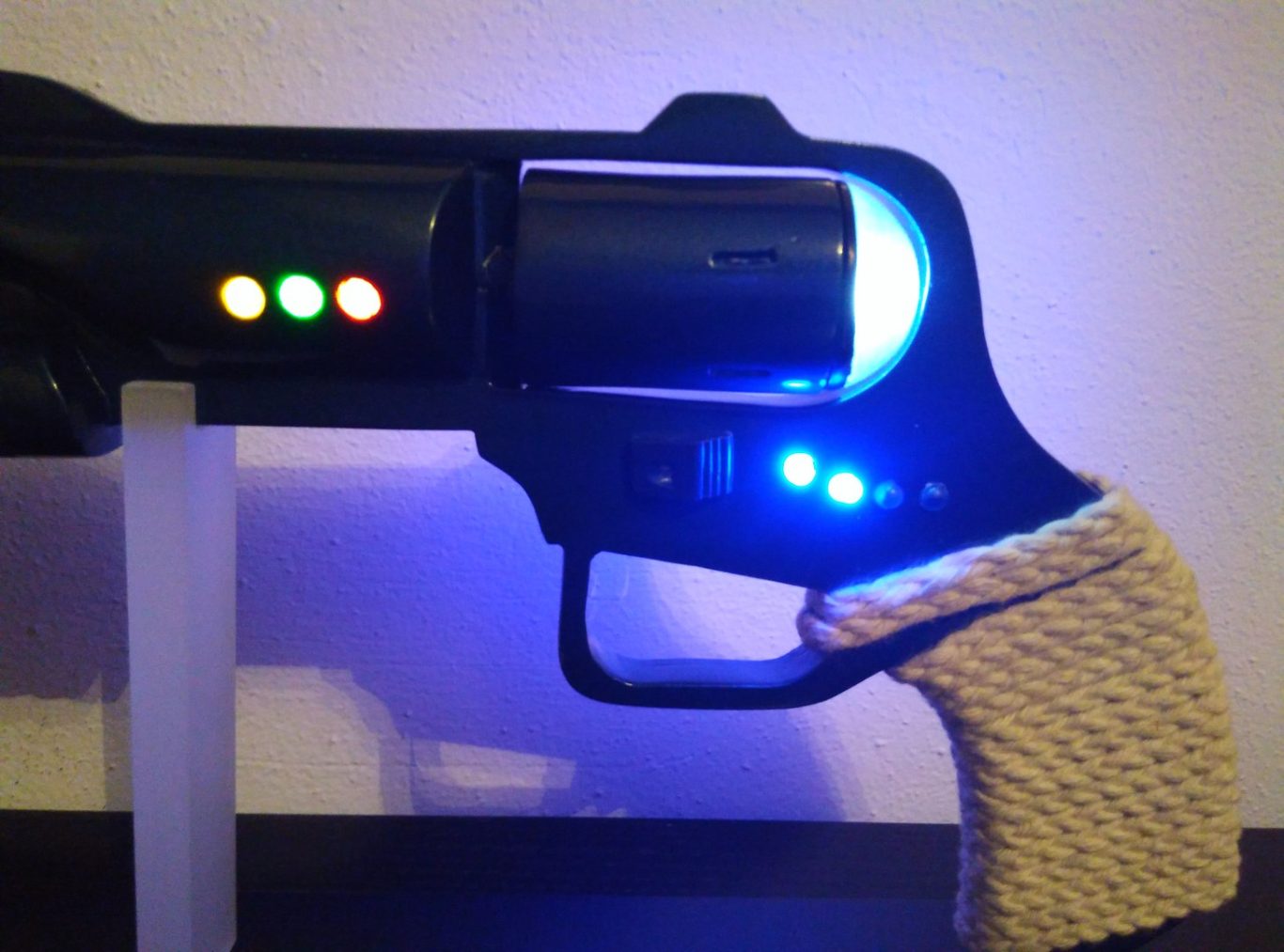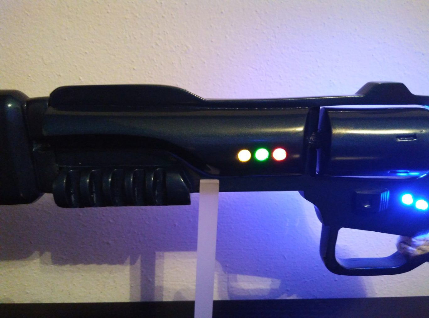 It comes with 5 LEDs that light up with a switch on the side of the model